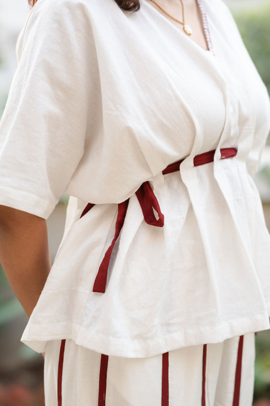 This cotton co-ord set is a must-have in every fashionista's wardrobe. It's both comfortable and stylish, making it perfect for any occasion. The cotton fabric feels soft on the skin, making it a delightful experience to wear it all day long. Also the colour combination is classic and timeless, so you can wear it all year round. A MUST buy!