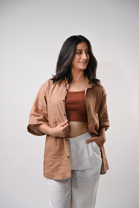 Rust brown Upcycled Unisex Linen Shirt