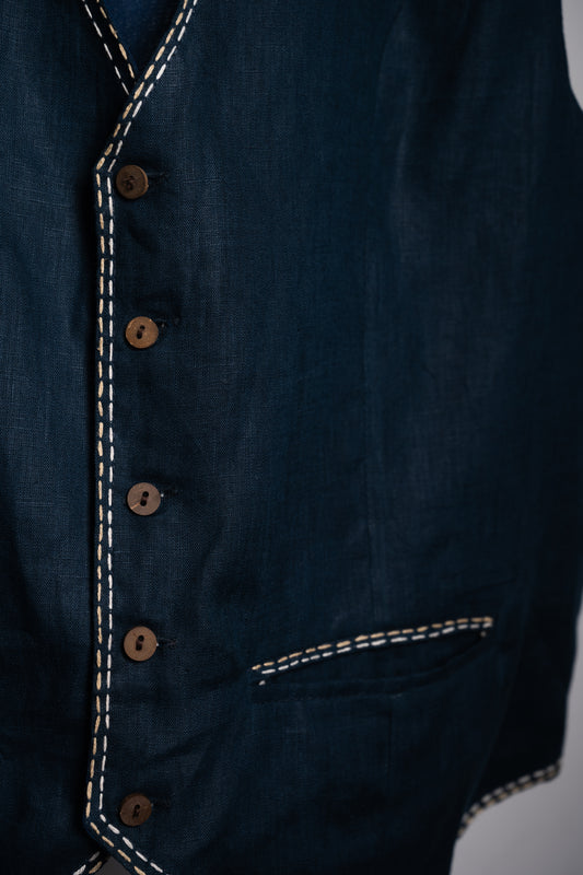 Sold outTeal Blue Embroidered Linen Vest