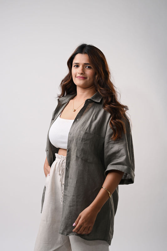 Sold outDark Olive- Green Unisex Linen Shirt